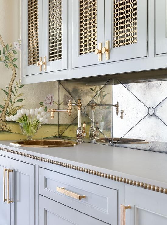 Light Blue Cabinets with Brass Hardware for a Glamorous Combo