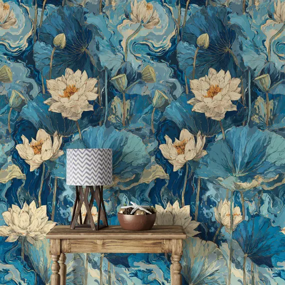 Water-resistant and washable wallpaper options make this choice practical for bathrooms. A patterned wall can anchor a vanity area or serve as an accent behind shelving or mirrors.