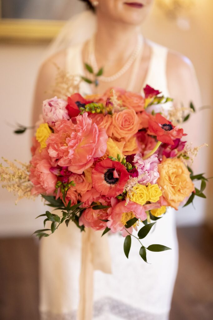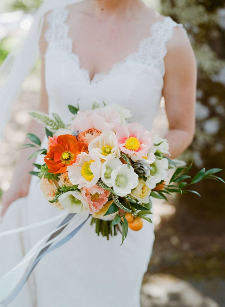 A poppy and anemone bouquet is perfect for a bride who wants a bouquet that makes a statement. It’s ideal for a wedding with a boho or modern vibe, particularly one that embraces bold, artistic elements.